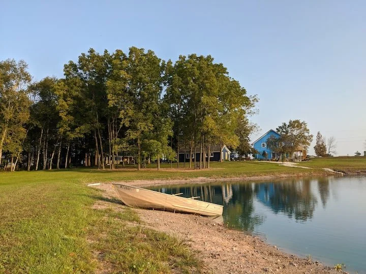 Your getaway includes 4 Free Mvmt Shop classes, guided meditations, 2 nights in your shared or private room, private property access, bonfire, outdoor basketball court and golf green, in home meals, snacks and drinks, WiFi (butttttt!!!!), sponsored swag and goodies, private pond with kayak and all the feels and connection you want. Optional carpool van travel departing mid day Friday and heading back to Chicago Sunday morning after checkout available for additional cost.